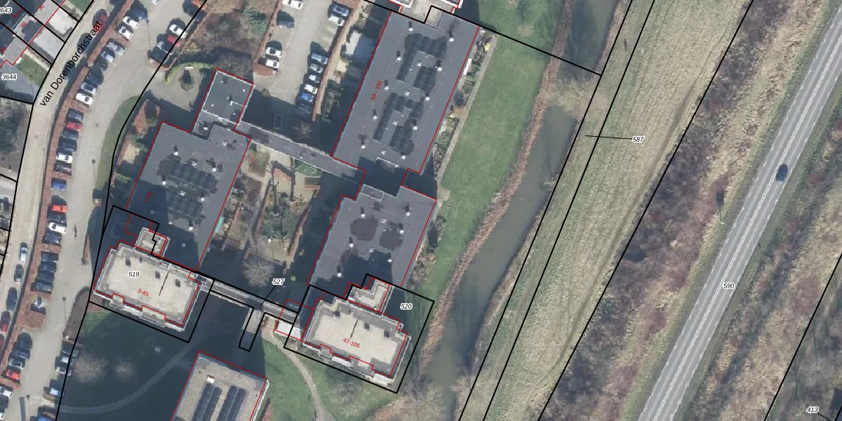 Het perceel waarop van Dorenborchstraat 63 staat heeft een oppervlakte van 1,5 ha. Dit is een zeer groot perceel. De perceeloppervlakte wordt geregistreerd door het Kadaster. Gedetailleerde informatie over de maten van dit perceel kunt u vinden in het rapport Kadastrale kaart met maatvoering van van Dorenborchstraat 63.