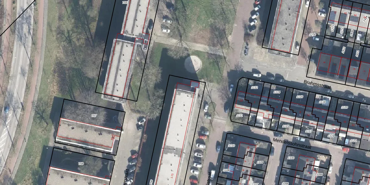 Het perceel waarop Verdistraat 55 staat heeft een oppervlakte van 2106 m². Dit is een zeer groot perceel. De perceeloppervlakte wordt geregistreerd door het Kadaster. Gedetailleerde informatie over de maten van dit perceel kunt u vinden in het rapport Kadastrale kaart met maatvoering van Verdistraat 55.