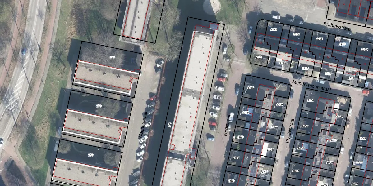 Het perceel waarop Verdistraat 63 staat heeft een oppervlakte van 2106 m². Dit is een zeer groot perceel. De perceeloppervlakte wordt geregistreerd door het Kadaster. Gedetailleerde informatie over de maten van dit perceel kunt u vinden in het rapport Kadastrale kaart met maatvoering van Verdistraat 63.