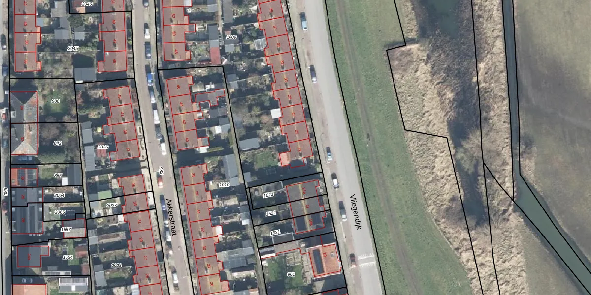Het perceel waarop Vliegendijk 23 staat heeft een oppervlakte van 2315 m². Dit is een zeer groot perceel. De perceeloppervlakte wordt geregistreerd door het Kadaster. Gedetailleerde informatie over de maten van dit perceel kunt u vinden in het rapport Kadastrale kaart met maatvoering van Vliegendijk 23.