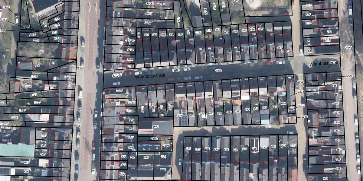 Het perceel waarop Wambuisstraat 2-d staat heeft een oppervlakte van 166 m². Dit is een middelgroot perceel. De perceeloppervlakte wordt geregistreerd door het Kadaster. Gedetailleerde informatie over de maten van dit perceel kunt u vinden in het rapport Kadastrale kaart met maatvoering van Wambuisstraat 2-d.