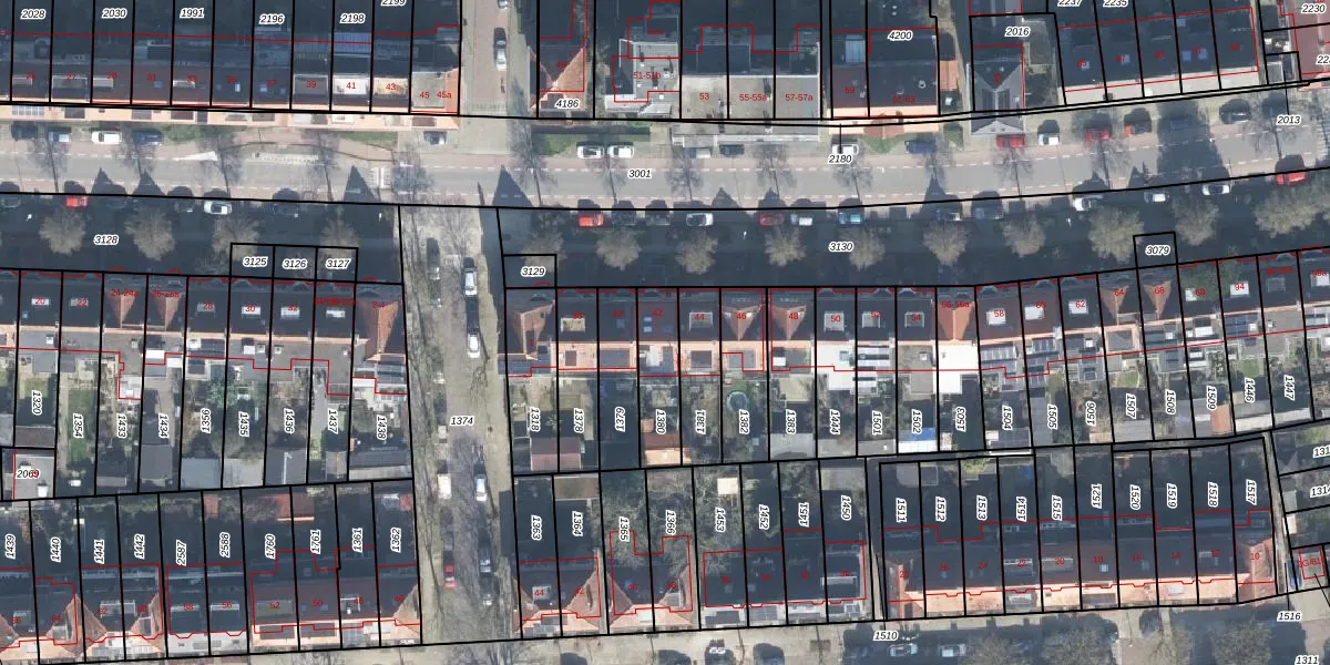 Gebruik de zoekbalk of klik op een perceel voor informatie over de adressen binnen dit perceel.
