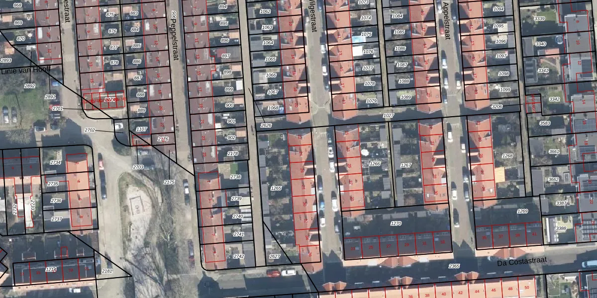 Het perceel waarop Wilgestraat 24 staat heeft een oppervlakte van 766 m². Dit is een groot perceel. De perceeloppervlakte wordt geregistreerd door het Kadaster. Gedetailleerde informatie over de maten van dit perceel kunt u vinden in het rapport Kadastrale kaart met maatvoering van Wilgestraat 24.