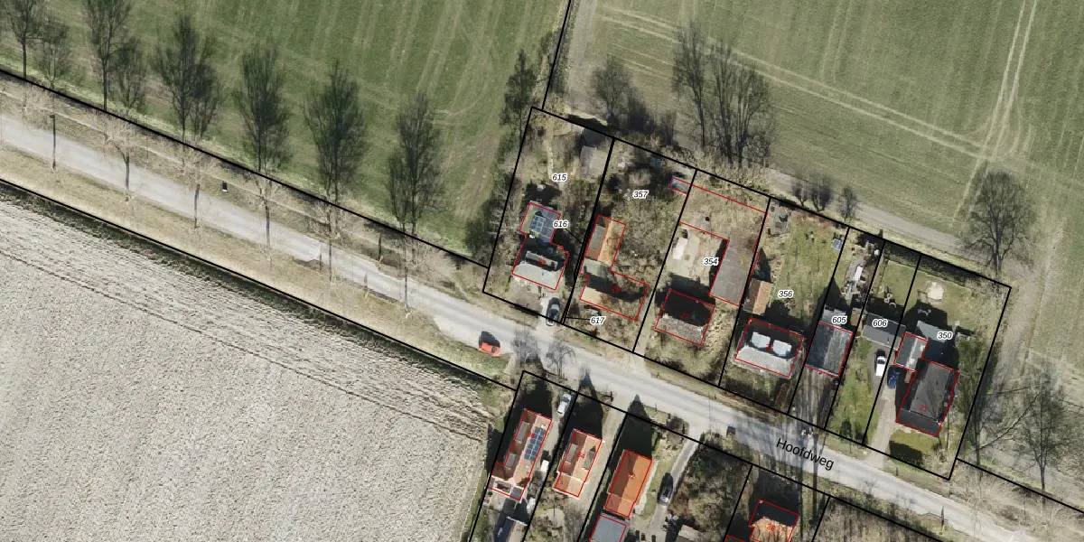 Hoofdweg 33 is gelegen op kadastraal perceel LEE02L615. Deze kadastrale aanduiding is uniek en wordt gebruikt door het Kadaster om eigendomsrechten en andere zakelijke rechten vast te leggen. Het perceel maakt onderdeel uit van de kadastrale gemeente Leens.
