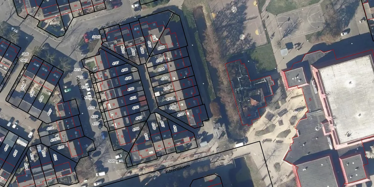 Gebruik de zoekbalk of klik op een perceel voor informatie over de adressen binnen dit perceel.