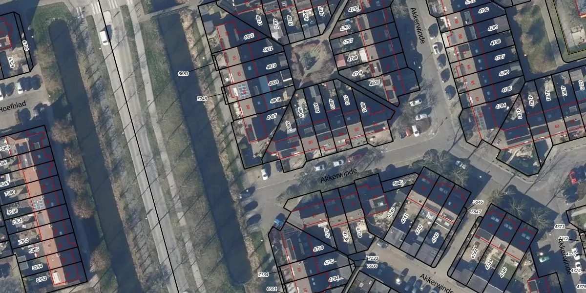 Gebruik de zoekbalk of klik op een perceel voor informatie over de adressen binnen dit perceel.