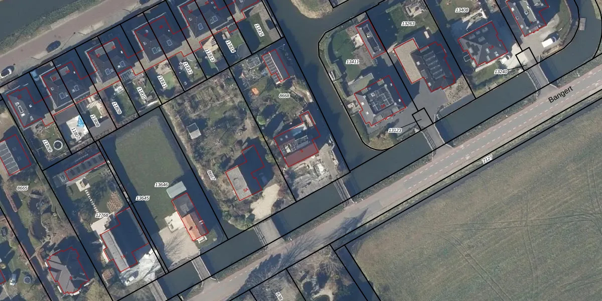 Het perceel waarop Bangert 5 staat heeft een oppervlakte van 1040 m². Dit is een zeer groot perceel. De perceeloppervlakte wordt geregistreerd door het Kadaster. Gedetailleerde informatie over de maten van dit perceel kunt u vinden in het rapport Kadastrale kaart met maatvoering van Bangert 5.
