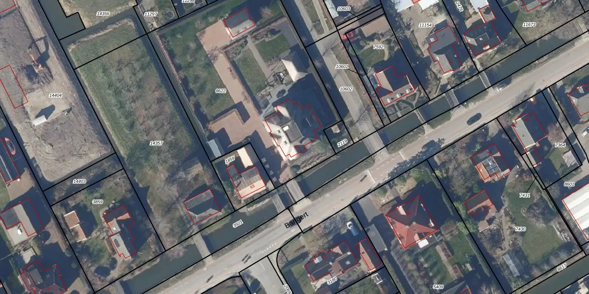 Het perceel waarop Bangert 61 staat heeft een oppervlakte van 2675 m². Dit is een zeer groot perceel. De perceeloppervlakte wordt geregistreerd door het Kadaster. Gedetailleerde informatie over de maten van dit perceel kunt u vinden in het rapport Kadastrale kaart met maatvoering van Bangert 61.
