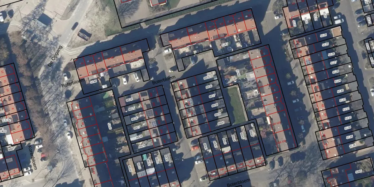 Het perceel waarop Boterbloem 110 staat heeft een oppervlakte van 126 m². Dit is een middelgroot perceel. De perceeloppervlakte wordt geregistreerd door het Kadaster. Gedetailleerde informatie over de maten van dit perceel kunt u vinden in het rapport Kadastrale kaart met maatvoering van Boterbloem 110.