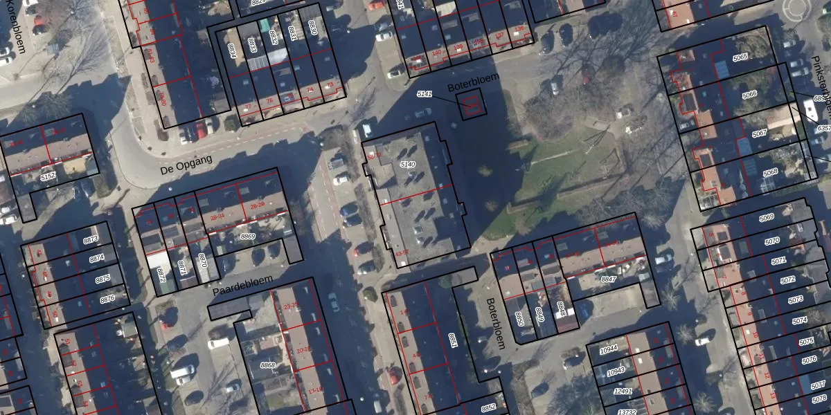 Boterbloem 55 is gelegen op kadastraal perceel HOO00I5140. Deze kadastrale aanduiding is uniek en wordt gebruikt door het Kadaster om eigendomsrechten en andere zakelijke rechten vast te leggen. Het perceel maakt onderdeel uit van de kadastrale gemeente Hoorn.