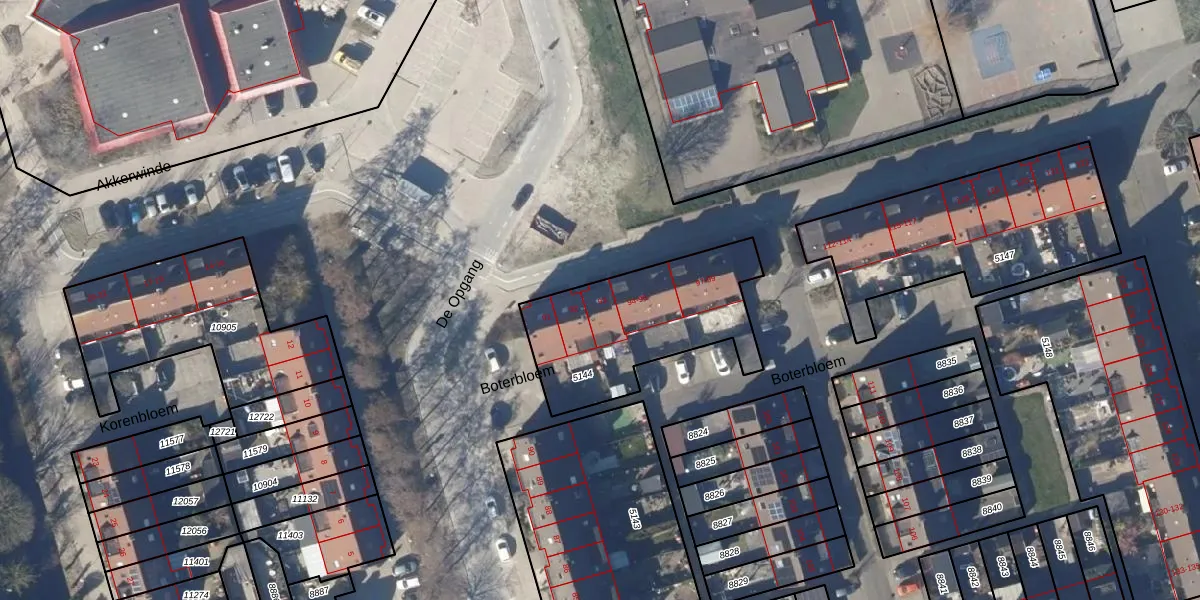 Het perceel waarop Boterbloem 93 staat heeft een oppervlakte van 668 m². Dit is een groot perceel. De perceeloppervlakte wordt geregistreerd door het Kadaster. Gedetailleerde informatie over de maten van dit perceel kunt u vinden in het rapport Kadastrale kaart met maatvoering van Boterbloem 93.