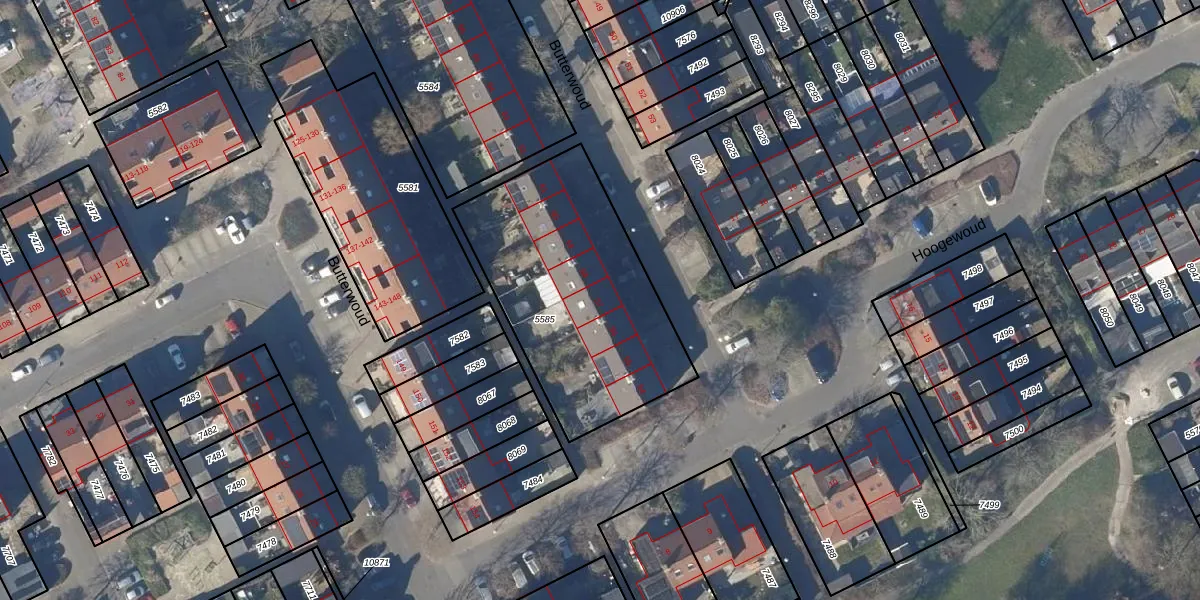 Het perceel waarop Butterwoud 57 staat heeft een oppervlakte van 1042 m². Dit is een zeer groot perceel. De perceeloppervlakte wordt geregistreerd door het Kadaster. Gedetailleerde informatie over de maten van dit perceel kunt u vinden in het rapport Kadastrale kaart met maatvoering van Butterwoud 57.