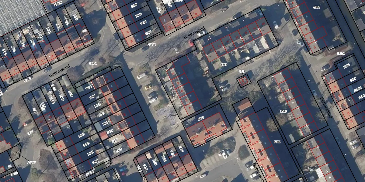 Het perceel waarop Butterwoud 82 staat heeft een oppervlakte van 1731 m². Dit is een zeer groot perceel. De perceeloppervlakte wordt geregistreerd door het Kadaster. Gedetailleerde informatie over de maten van dit perceel kunt u vinden in het rapport Kadastrale kaart met maatvoering van Butterwoud 82.