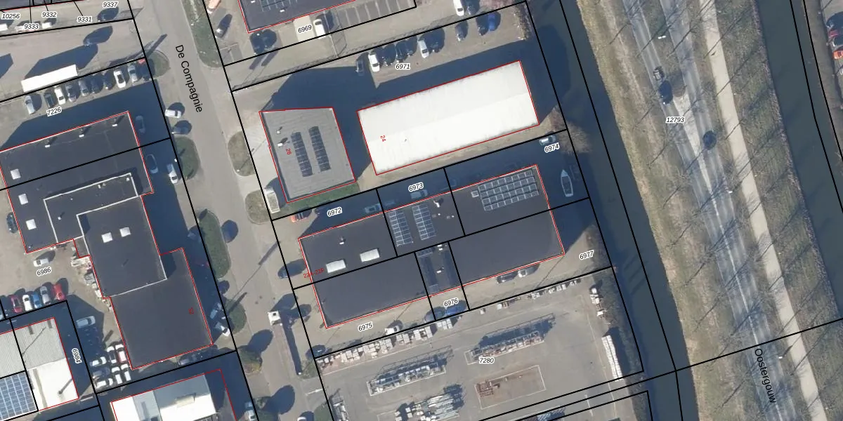 Het perceel waarop De Compagnie 22-F staat heeft een oppervlakte van 287 m². Dit is een middelgroot perceel. De perceeloppervlakte wordt geregistreerd door het Kadaster. Gedetailleerde informatie over de maten van dit perceel kunt u vinden in het rapport Kadastrale kaart met maatvoering van De Compagnie 22-F.