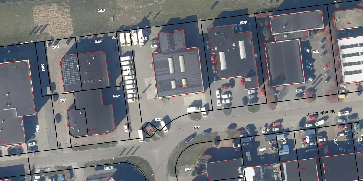 Het perceel waarop De Compagnie 49 staat heeft een oppervlakte van 2066 m². Dit is een zeer groot perceel. De perceeloppervlakte wordt geregistreerd door het Kadaster. Gedetailleerde informatie over de maten van dit perceel kunt u vinden in het rapport Kadastrale kaart met maatvoering van De Compagnie 49.