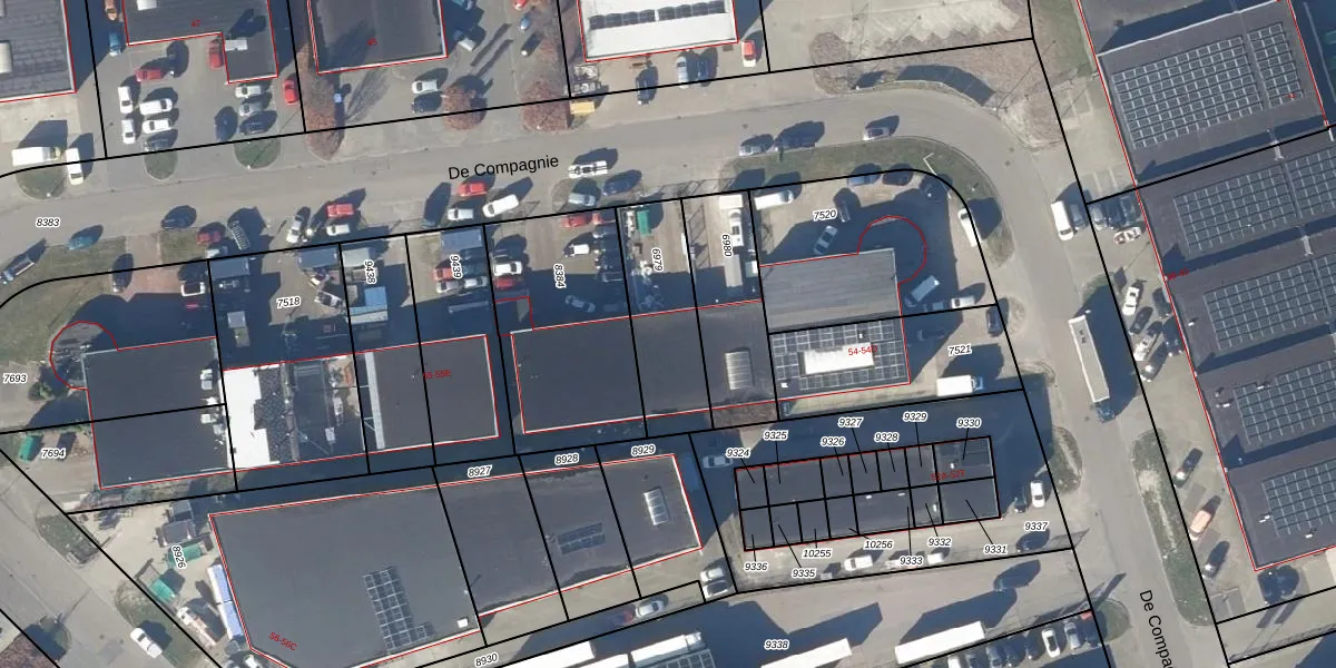 Het perceel waarop De Compagnie 54-C staat heeft een oppervlakte van 349 m². Dit is een groot perceel. De perceeloppervlakte wordt geregistreerd door het Kadaster. Gedetailleerde informatie over de maten van dit perceel kunt u vinden in het rapport Kadastrale kaart met maatvoering van De Compagnie 54-C.