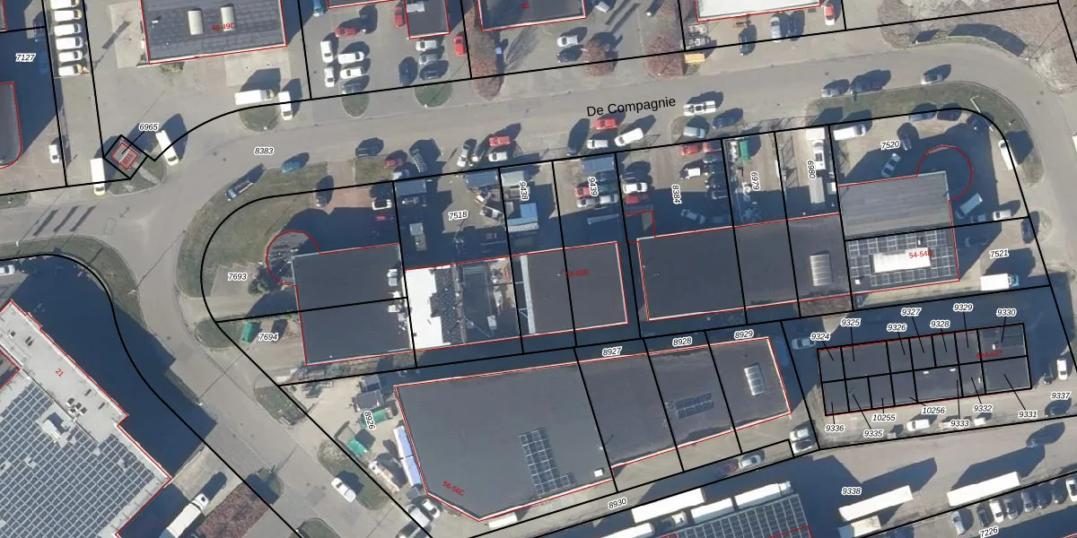 Het perceel waarop De Compagnie 55-A staat heeft een oppervlakte van 349 m². Dit is een groot perceel. De perceeloppervlakte wordt geregistreerd door het Kadaster. Gedetailleerde informatie over de maten van dit perceel kunt u vinden in het rapport Kadastrale kaart met maatvoering van De Compagnie 55-A.