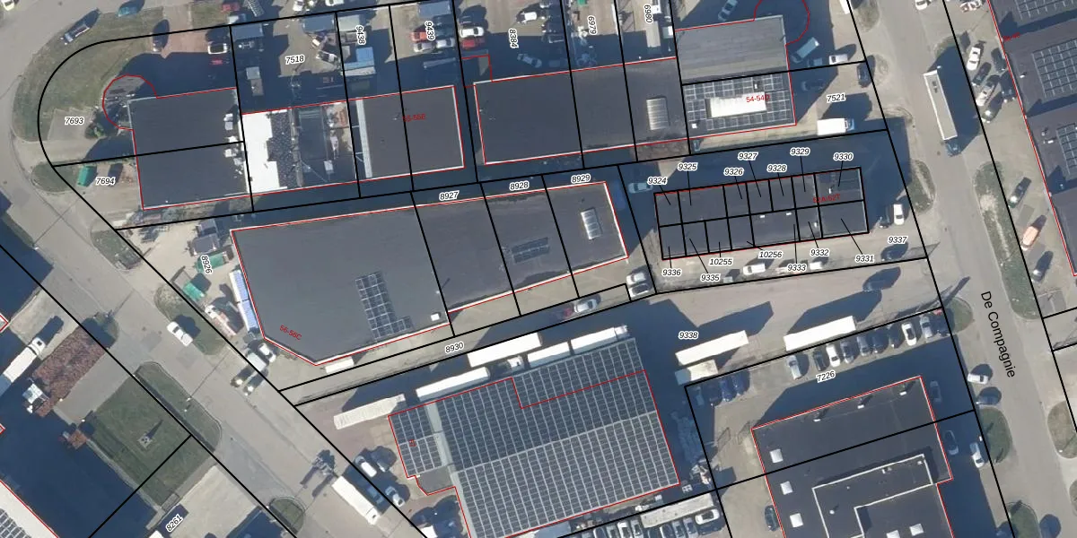 Het perceel waarop De Compagnie 56-B staat heeft een oppervlakte van 283 m². Dit is een middelgroot perceel. De perceeloppervlakte wordt geregistreerd door het Kadaster. Gedetailleerde informatie over de maten van dit perceel kunt u vinden in het rapport Kadastrale kaart met maatvoering van De Compagnie 56-B.