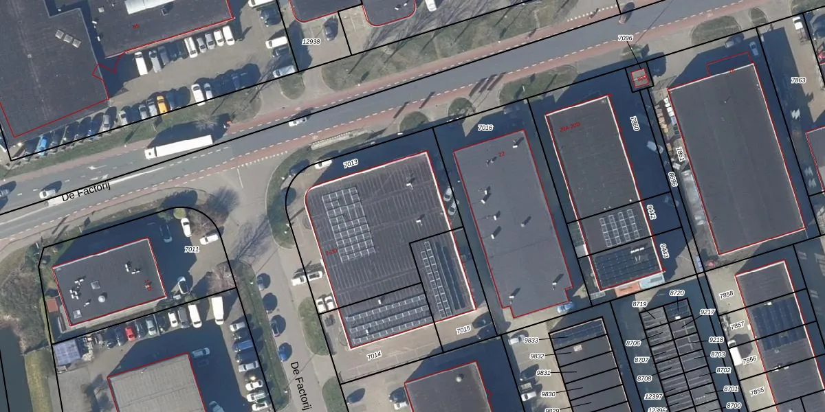 Het perceel waarop De Factorij 2-D staat heeft een oppervlakte van 1247 m². Dit is een zeer groot perceel. De perceeloppervlakte wordt geregistreerd door het Kadaster. Gedetailleerde informatie over de maten van dit perceel kunt u vinden in het rapport Kadastrale kaart met maatvoering van De Factorij 2-D.