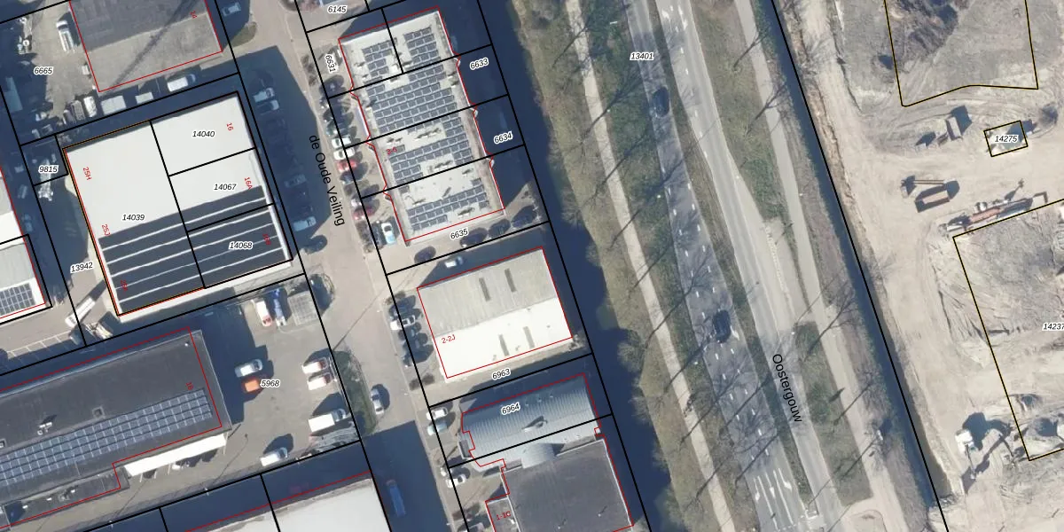Het perceel waarop de Oude Veiling 2-G staat heeft een oppervlakte van 848 m². Dit is een groot perceel. De perceeloppervlakte wordt geregistreerd door het Kadaster. Gedetailleerde informatie over de maten van dit perceel kunt u vinden in het rapport Kadastrale kaart met maatvoering van de Oude Veiling 2-G.