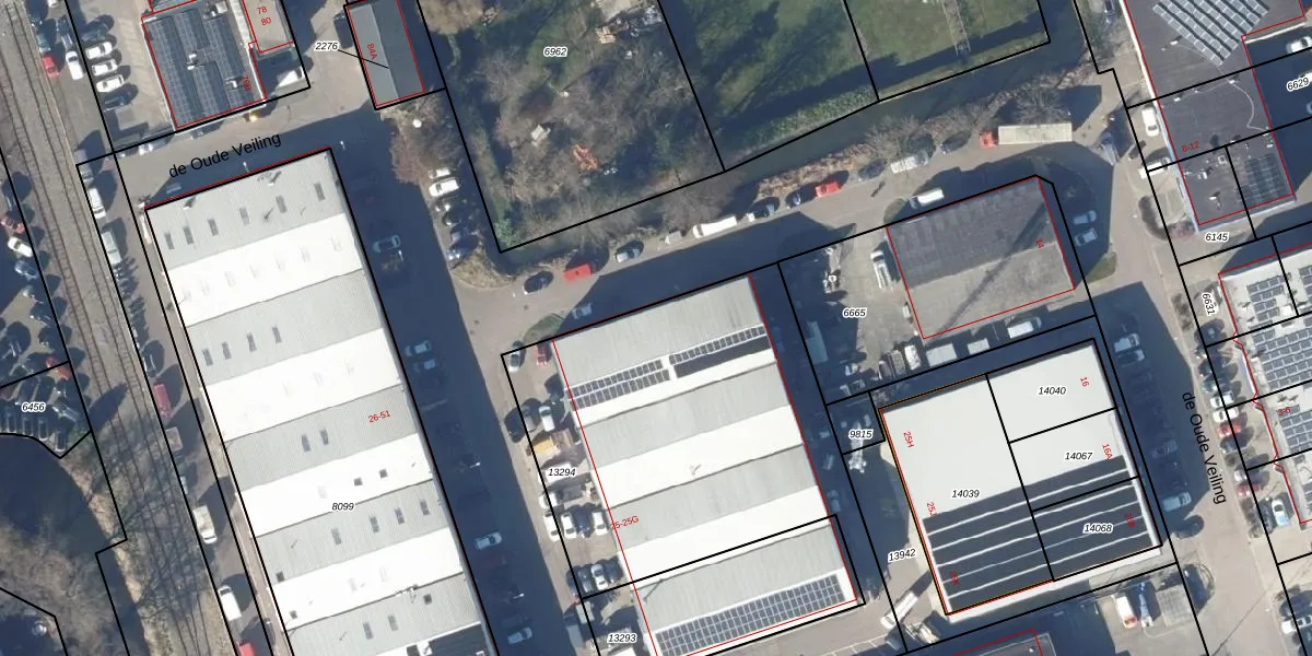 Het perceel waarop de Oude Veiling 25-D staat heeft een oppervlakte van 2208 m². Dit is een zeer groot perceel. De perceeloppervlakte wordt geregistreerd door het Kadaster. Gedetailleerde informatie over de maten van dit perceel kunt u vinden in het rapport Kadastrale kaart met maatvoering van de Oude Veiling 25-D.