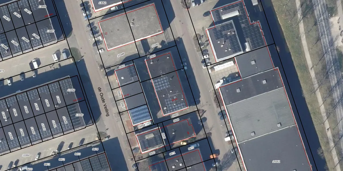 Het perceel waarop de Oude Veiling 90-A staat heeft een oppervlakte van 701 m². Dit is een groot perceel. De perceeloppervlakte wordt geregistreerd door het Kadaster. Gedetailleerde informatie over de maten van dit perceel kunt u vinden in het rapport Kadastrale kaart met maatvoering van de Oude Veiling 90-A.