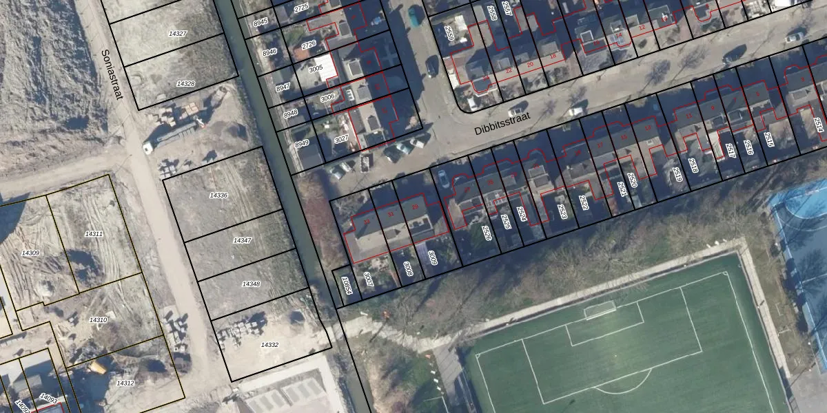 Het perceel waarop Dibbitsstraat 29 staat heeft een oppervlakte van 241 m². Dit is een middelgroot perceel. De perceeloppervlakte wordt geregistreerd door het Kadaster. Gedetailleerde informatie over de maten van dit perceel kunt u vinden in het rapport Kadastrale kaart met maatvoering van Dibbitsstraat 29.