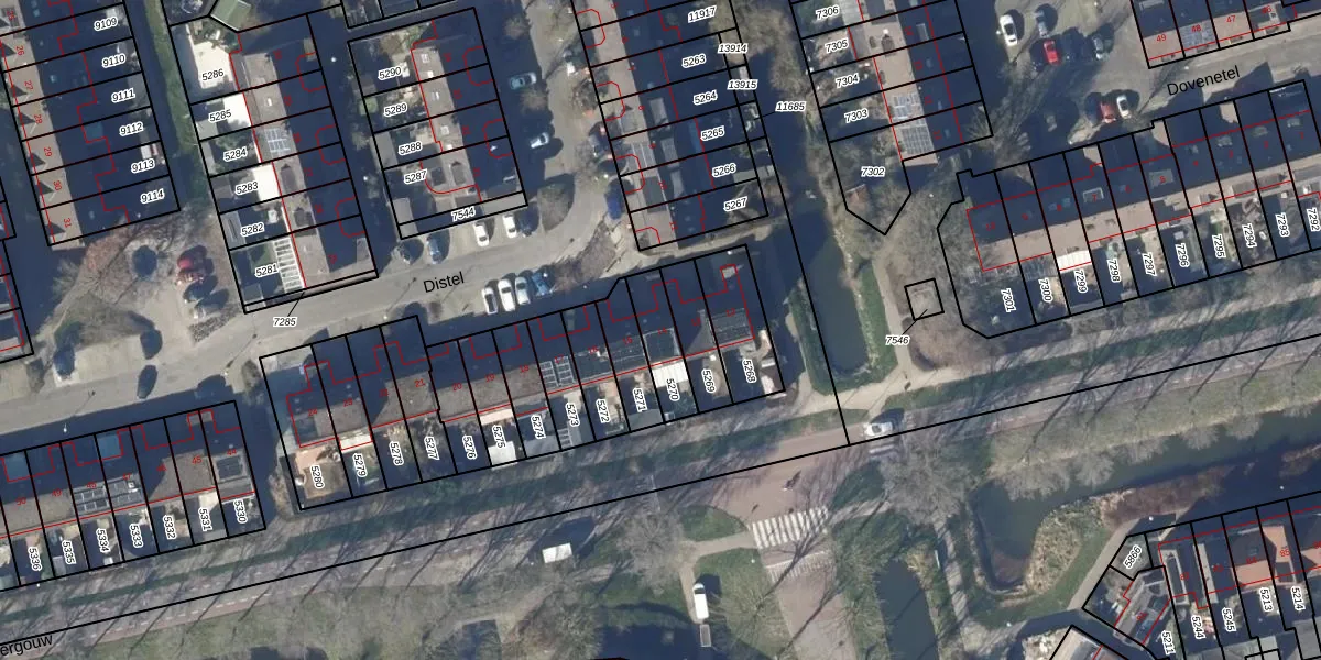 Het perceel waarop Distel 14 staat heeft een oppervlakte van 122 m². Dit is een middelgroot perceel. De perceeloppervlakte wordt geregistreerd door het Kadaster. Gedetailleerde informatie over de maten van dit perceel kunt u vinden in het rapport Kadastrale kaart met maatvoering van Distel 14.