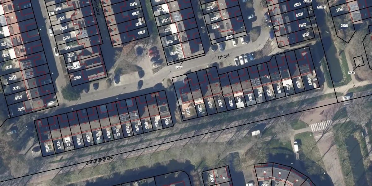 Het perceel waarop Distel 24 staat heeft een oppervlakte van 194 m². Dit is een middelgroot perceel. De perceeloppervlakte wordt geregistreerd door het Kadaster. Gedetailleerde informatie over de maten van dit perceel kunt u vinden in het rapport Kadastrale kaart met maatvoering van Distel 24.