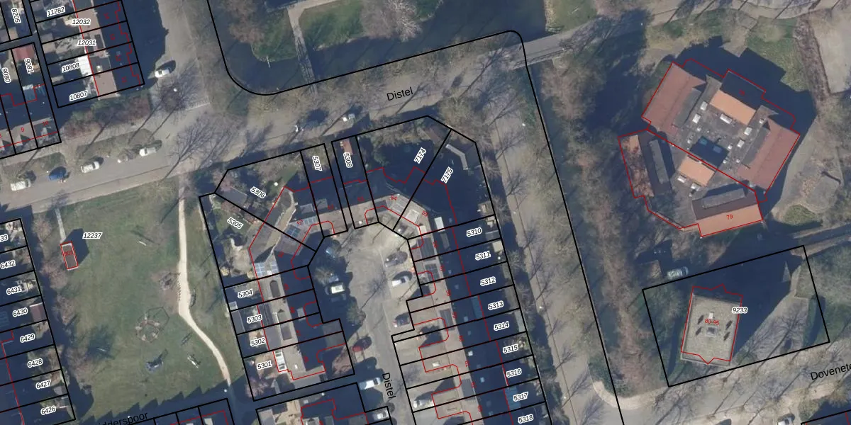 Het perceel waarop Distel 55 staat heeft een oppervlakte van 330 m². Dit is een groot perceel. De perceeloppervlakte wordt geregistreerd door het Kadaster. Gedetailleerde informatie over de maten van dit perceel kunt u vinden in het rapport Kadastrale kaart met maatvoering van Distel 55.