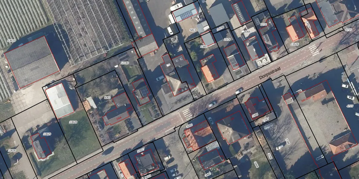 Het perceel waarop Dorpsstraat 159 staat heeft een oppervlakte van 5765 m². Dit is een zeer groot perceel. De perceeloppervlakte wordt geregistreerd door het Kadaster. Gedetailleerde informatie over de maten van dit perceel kunt u vinden in het rapport Kadastrale kaart met maatvoering van Dorpsstraat 159.