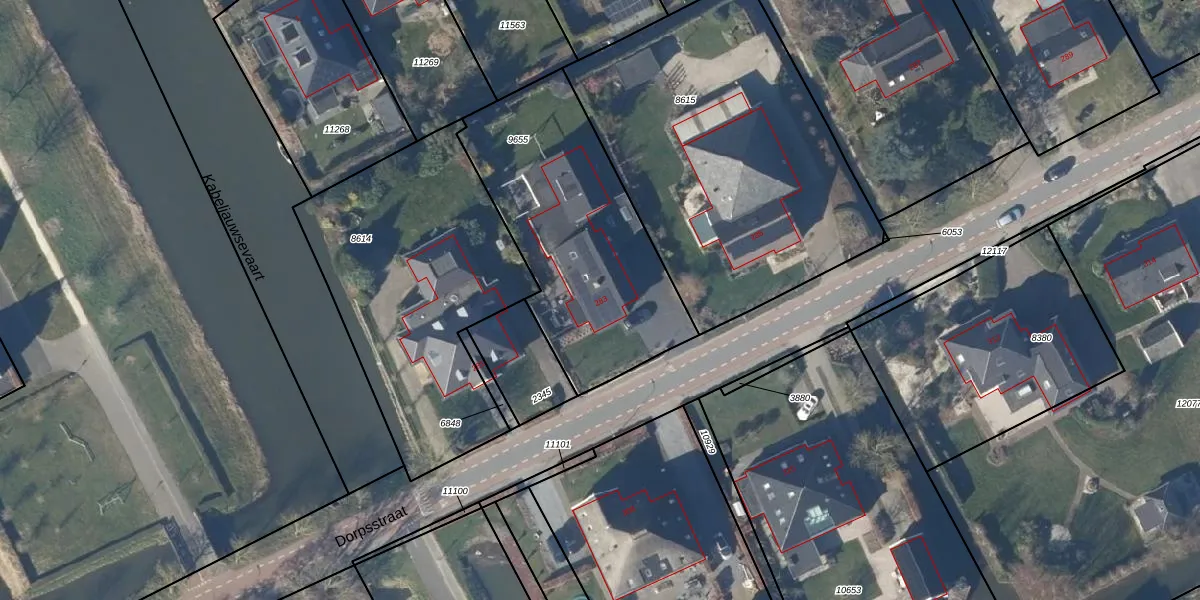 Het perceel waarop Dorpsstraat 283 staat heeft een oppervlakte van 1037 m². Dit is een zeer groot perceel. De perceeloppervlakte wordt geregistreerd door het Kadaster. Gedetailleerde informatie over de maten van dit perceel kunt u vinden in het rapport Kadastrale kaart met maatvoering van Dorpsstraat 283.