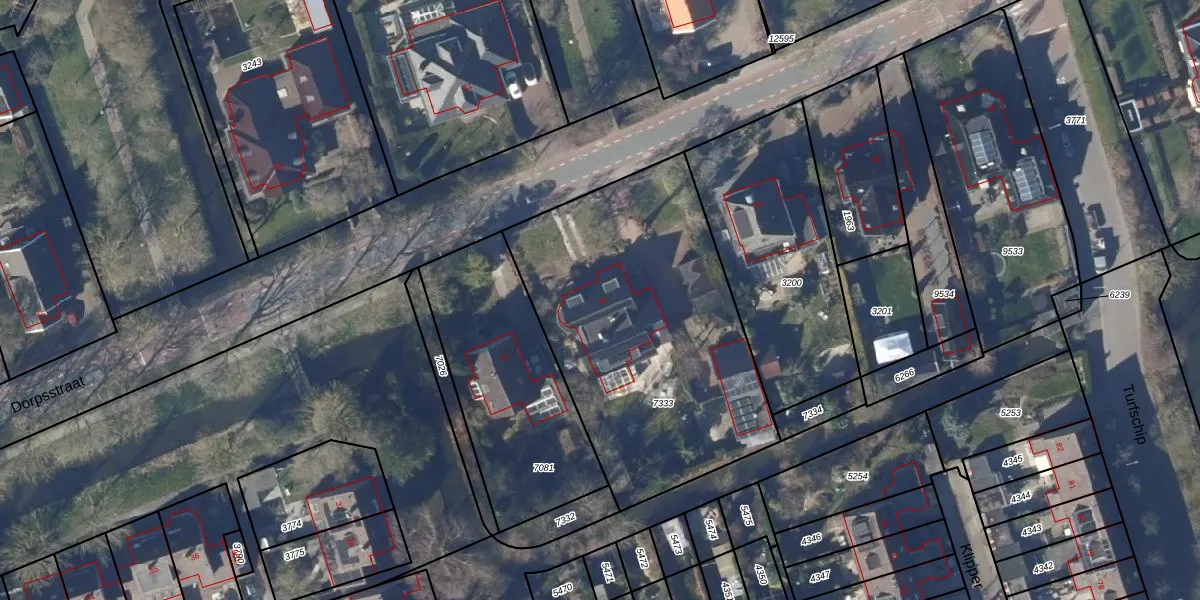 Het perceel waarop Dorpsstraat 54 staat heeft een oppervlakte van 1592 m². Dit is een zeer groot perceel. De perceeloppervlakte wordt geregistreerd door het Kadaster. Gedetailleerde informatie over de maten van dit perceel kunt u vinden in het rapport Kadastrale kaart met maatvoering van Dorpsstraat 54.