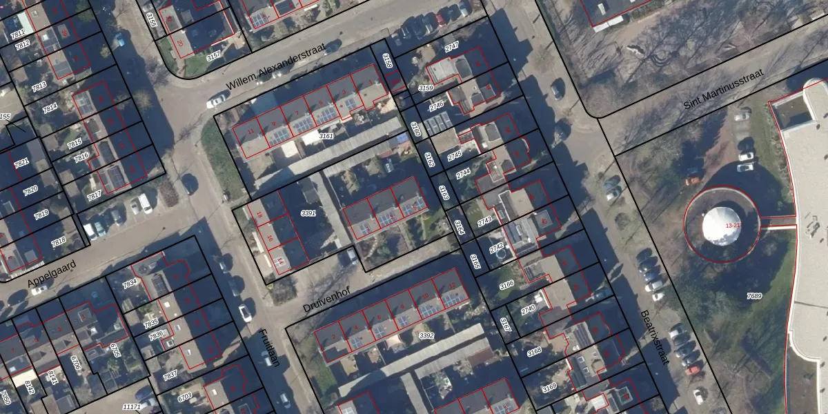 Het perceel waarop Druivenhof 5 staat heeft een oppervlakte van 1099 m². Dit is een zeer groot perceel. De perceeloppervlakte wordt geregistreerd door het Kadaster. Gedetailleerde informatie over de maten van dit perceel kunt u vinden in het rapport Kadastrale kaart met maatvoering van Druivenhof 5.