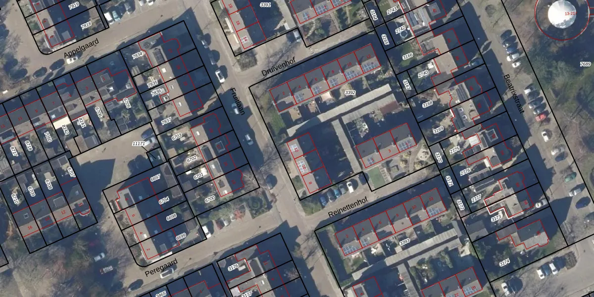 Het perceel waarop Fruitlaan 12 staat heeft een oppervlakte van 2130 m². Dit is een zeer groot perceel. De perceeloppervlakte wordt geregistreerd door het Kadaster. Gedetailleerde informatie over de maten van dit perceel kunt u vinden in het rapport Kadastrale kaart met maatvoering van Fruitlaan 12.