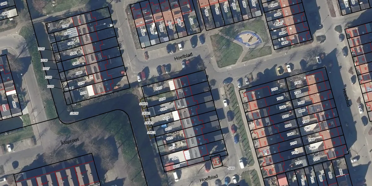 Het perceel waarop Hoefblad 119 staat heeft een oppervlakte van 190 m². Dit is een middelgroot perceel. De perceeloppervlakte wordt geregistreerd door het Kadaster. Gedetailleerde informatie over de maten van dit perceel kunt u vinden in het rapport Kadastrale kaart met maatvoering van Hoefblad 119.