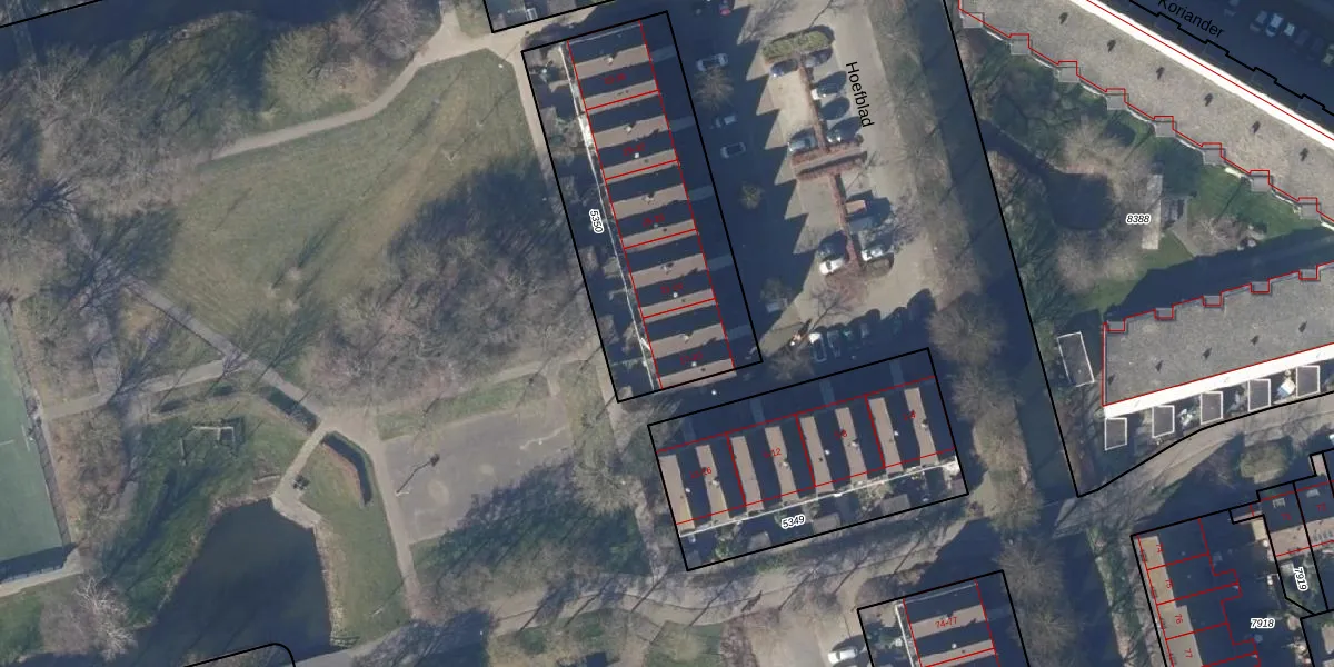 Het perceel waarop Hoefblad 20 staat heeft een oppervlakte van 1225 m². Dit is een zeer groot perceel. De perceeloppervlakte wordt geregistreerd door het Kadaster. Gedetailleerde informatie over de maten van dit perceel kunt u vinden in het rapport Kadastrale kaart met maatvoering van Hoefblad 20.