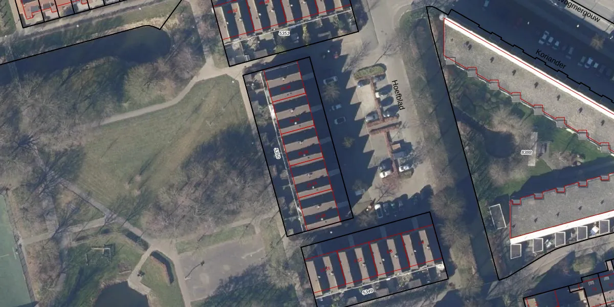 Het perceel waarop Hoefblad 25 staat heeft een oppervlakte van 1225 m². Dit is een zeer groot perceel. De perceeloppervlakte wordt geregistreerd door het Kadaster. Gedetailleerde informatie over de maten van dit perceel kunt u vinden in het rapport Kadastrale kaart met maatvoering van Hoefblad 25.