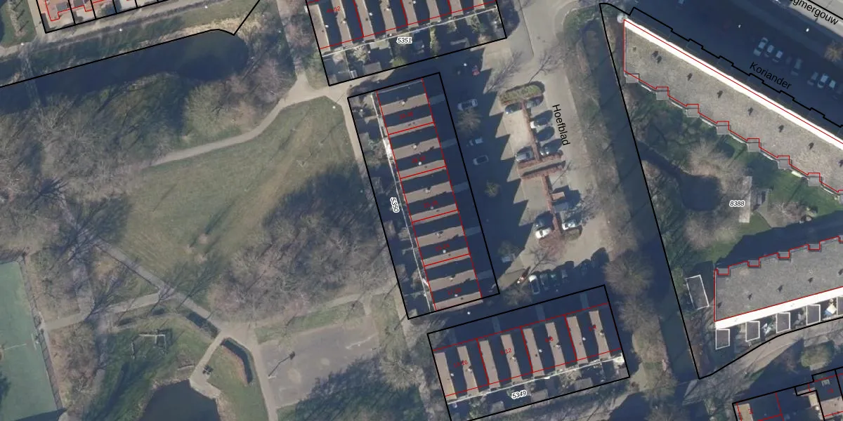 Het perceel waarop Hoefblad 27 staat heeft een oppervlakte van 1225 m². Dit is een zeer groot perceel. De perceeloppervlakte wordt geregistreerd door het Kadaster. Gedetailleerde informatie over de maten van dit perceel kunt u vinden in het rapport Kadastrale kaart met maatvoering van Hoefblad 27.