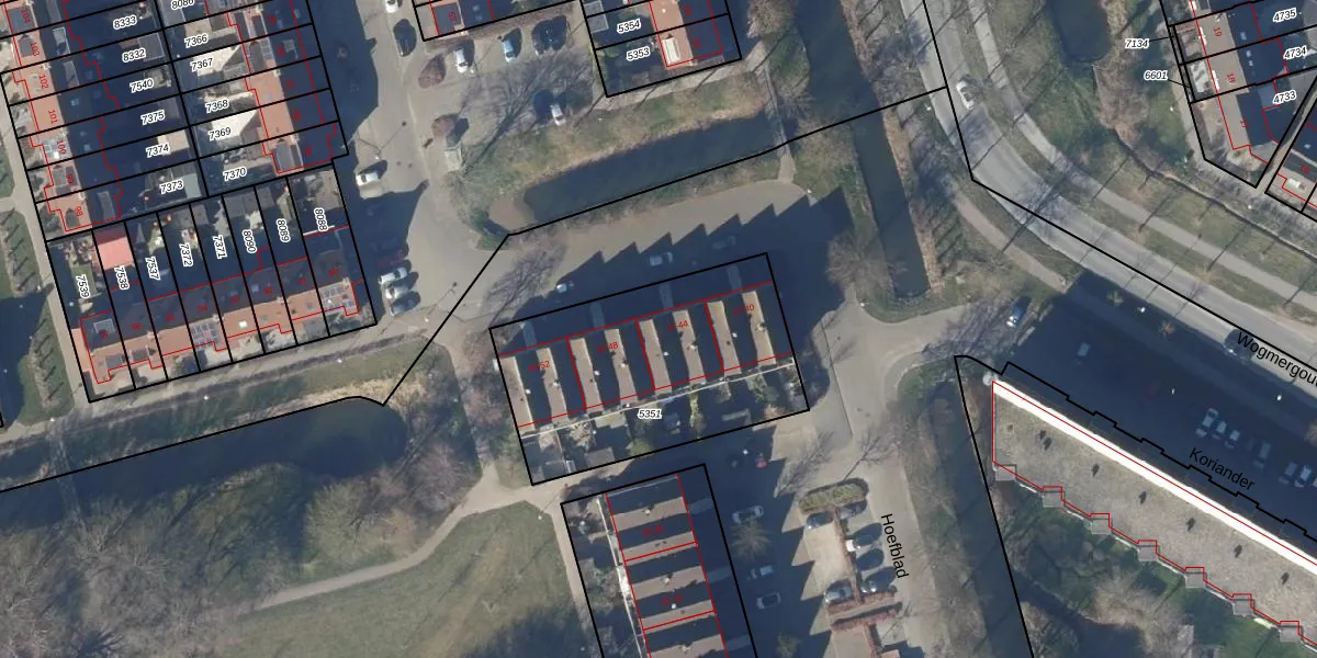 Het perceel waarop Hoefblad 42 staat heeft een oppervlakte van 1069 m². Dit is een zeer groot perceel. De perceeloppervlakte wordt geregistreerd door het Kadaster. Gedetailleerde informatie over de maten van dit perceel kunt u vinden in het rapport Kadastrale kaart met maatvoering van Hoefblad 42.