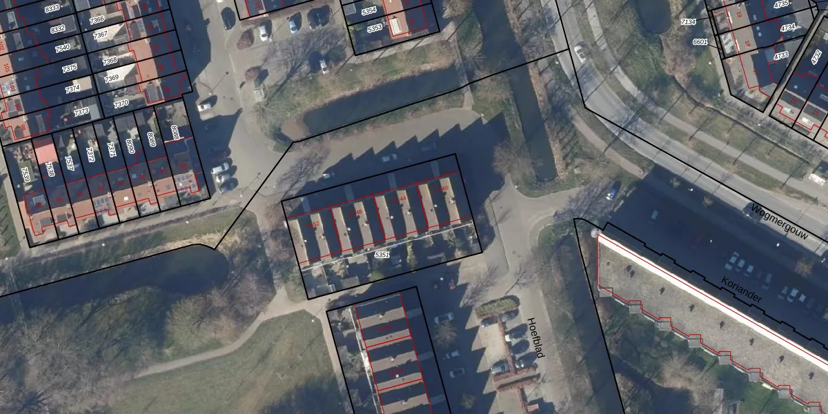 Het perceel waarop Hoefblad 43 staat heeft een oppervlakte van 1069 m². Dit is een zeer groot perceel. De perceeloppervlakte wordt geregistreerd door het Kadaster. Gedetailleerde informatie over de maten van dit perceel kunt u vinden in het rapport Kadastrale kaart met maatvoering van Hoefblad 43.