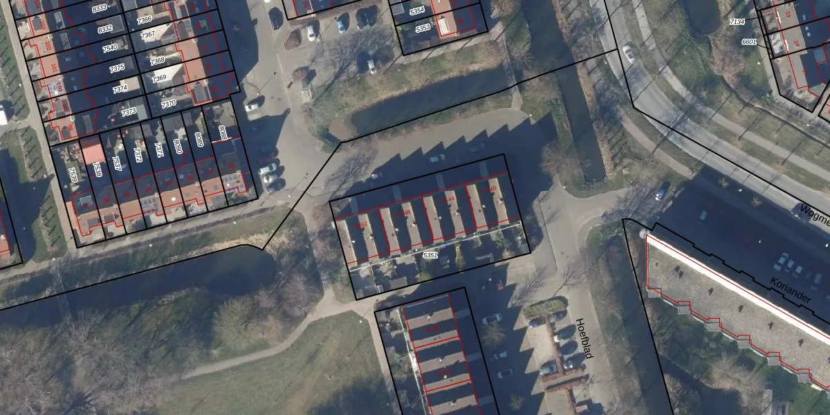 Het perceel waarop Hoefblad 45 staat heeft een oppervlakte van 1069 m². Dit is een zeer groot perceel. De perceeloppervlakte wordt geregistreerd door het Kadaster. Gedetailleerde informatie over de maten van dit perceel kunt u vinden in het rapport Kadastrale kaart met maatvoering van Hoefblad 45.