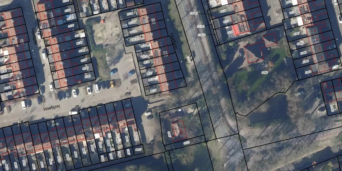 Hoefijzer 1 is gelegen op kadastraal perceel HOO00I9115. Deze kadastrale aanduiding is uniek en wordt gebruikt door het Kadaster om eigendomsrechten en andere zakelijke rechten vast te leggen. Het perceel maakt onderdeel uit van de kadastrale gemeente Hoorn.