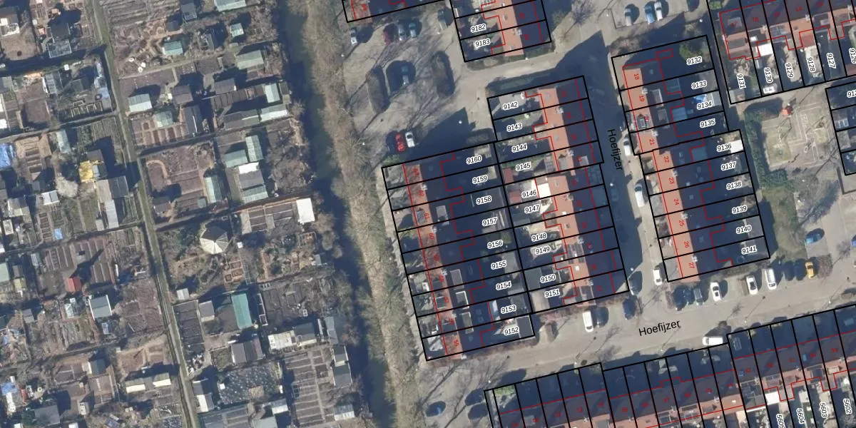 Het perceel waarop Hoefijzer 61 staat heeft een oppervlakte van 136 m². Dit is een middelgroot perceel. De perceeloppervlakte wordt geregistreerd door het Kadaster. Gedetailleerde informatie over de maten van dit perceel kunt u vinden in het rapport Kadastrale kaart met maatvoering van Hoefijzer 61.