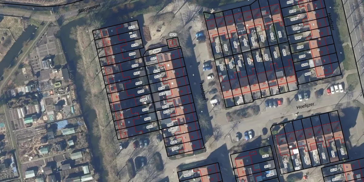 Het perceel waarop Hoefijzer 80 staat heeft een oppervlakte van 110 m². Dit is een middelgroot perceel. De perceeloppervlakte wordt geregistreerd door het Kadaster. Gedetailleerde informatie over de maten van dit perceel kunt u vinden in het rapport Kadastrale kaart met maatvoering van Hoefijzer 80.