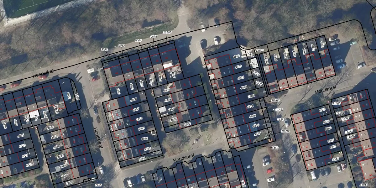 Het perceel waarop Hondsdraf 49 staat heeft een oppervlakte van 142 m². Dit is een middelgroot perceel. De perceeloppervlakte wordt geregistreerd door het Kadaster. Gedetailleerde informatie over de maten van dit perceel kunt u vinden in het rapport Kadastrale kaart met maatvoering van Hondsdraf 49.