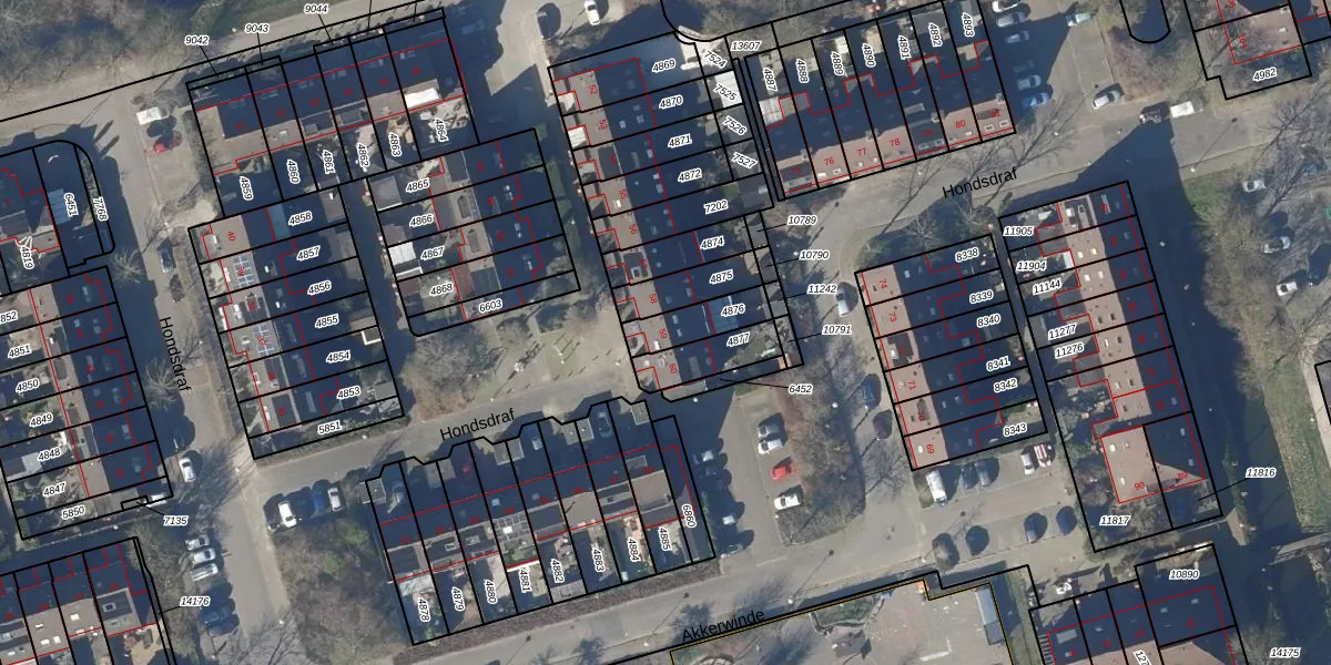 Het perceel waarop Hondsdraf 59 staat heeft een oppervlakte van 120 m². Dit is een middelgroot perceel. De perceeloppervlakte wordt geregistreerd door het Kadaster. Gedetailleerde informatie over de maten van dit perceel kunt u vinden in het rapport Kadastrale kaart met maatvoering van Hondsdraf 59.