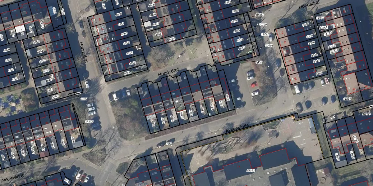 Het perceel waarop Hondsdraf 65 staat heeft een oppervlakte van 143 m². Dit is een middelgroot perceel. De perceeloppervlakte wordt geregistreerd door het Kadaster. Gedetailleerde informatie over de maten van dit perceel kunt u vinden in het rapport Kadastrale kaart met maatvoering van Hondsdraf 65.