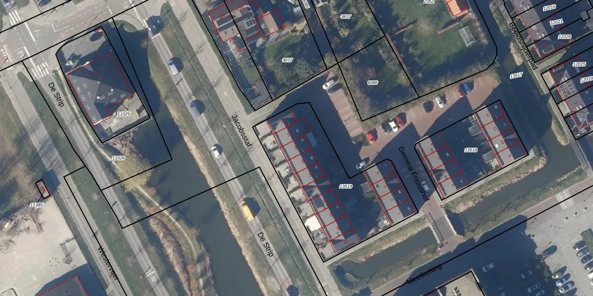 Het perceel waarop Jacobsstaf 60 staat heeft een oppervlakte van 1390 m². Dit is een zeer groot perceel. De perceeloppervlakte wordt geregistreerd door het Kadaster. Gedetailleerde informatie over de maten van dit perceel kunt u vinden in het rapport Kadastrale kaart met maatvoering van Jacobsstaf 60.