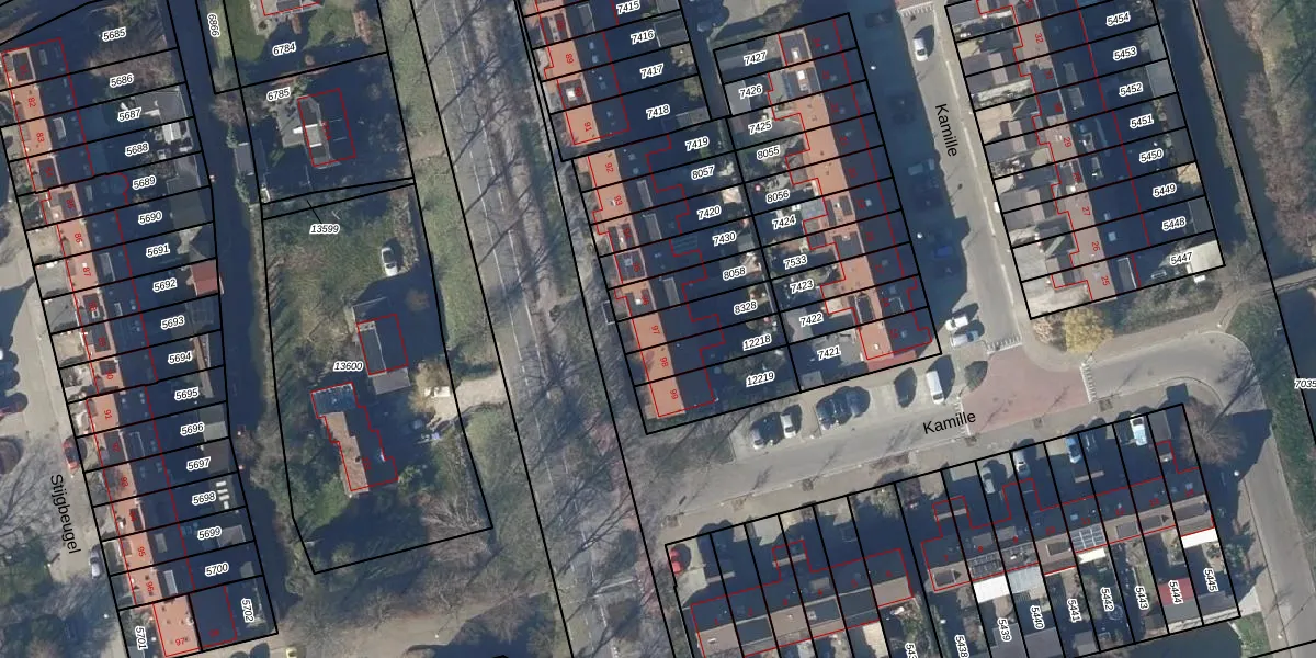 Het perceel waarop Kamille 97 staat heeft een oppervlakte van 124 m². Dit is een middelgroot perceel. De perceeloppervlakte wordt geregistreerd door het Kadaster. Gedetailleerde informatie over de maten van dit perceel kunt u vinden in het rapport Kadastrale kaart met maatvoering van Kamille 97.